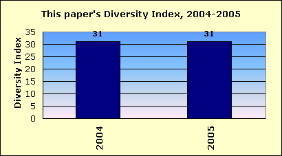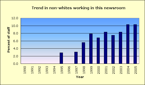 2005. Newspapers report non-white staff as of the end of the previous year. |