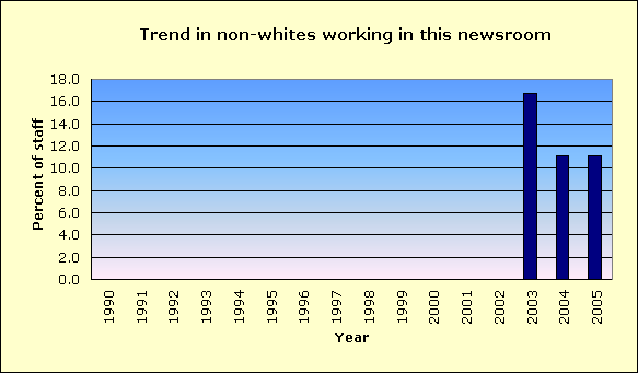 | Year | Non-white % of newsroom staff |