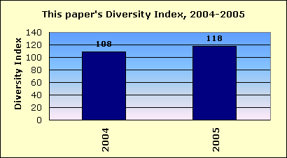 | This newspaper's Newsroom Diversity Index is 118. | This paper | |||||||||