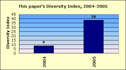 2005. Newspapers report non-white staff as of the end of the previous year. |