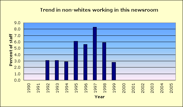 | 3. Following ASNE's definition, newsroom staff includes only supervisors, reporters, editors, copy/layout editors and photographers. | ||||||||||