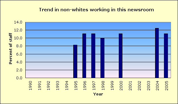 2005. Newspapers report non-white staff as of the end of the previous year. |