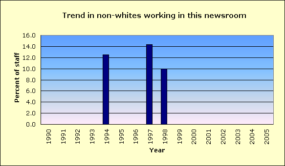 2005. Newspapers report non-white staff as of the end of the previous year. |
