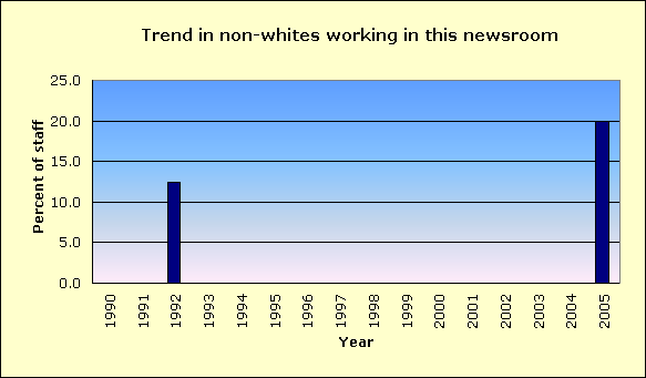2005. Newspapers report non-white staff as of the end of the previous year. |