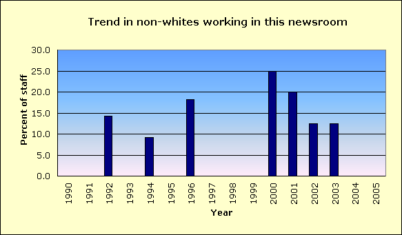 2005. Newspapers report non-white staff as of the end of the previous year. |