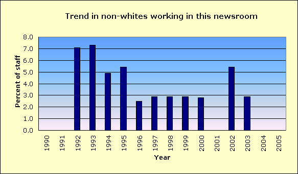 | Year | Non-white % of newsroom staff |
