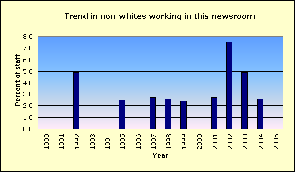 | Year | Non-white % of newsroom staff |