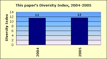 | This newspaper's Newsroom Diversity Index is 12. | This paper | |||||||||