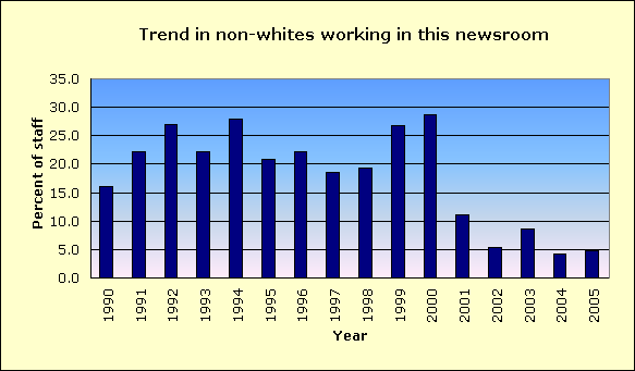 Year | Non-white % of newsroom staff | ![]() |