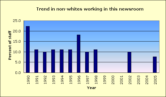 | Year | Non-white % of newsroom staff |