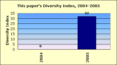 | This newspaper's Newsroom Diversity Index is 32. | This paper | |||||||||
