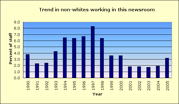 | Year | Non-white % of newsroom staff |