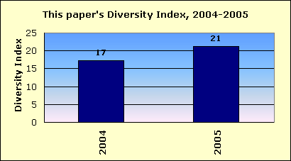 | This newspaper's Newsroom Diversity Index is 21. | This paper | |||||||||