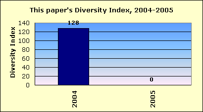 | This newspaper's Newsroom Diversity Index is 0. | This paper | |||||||||